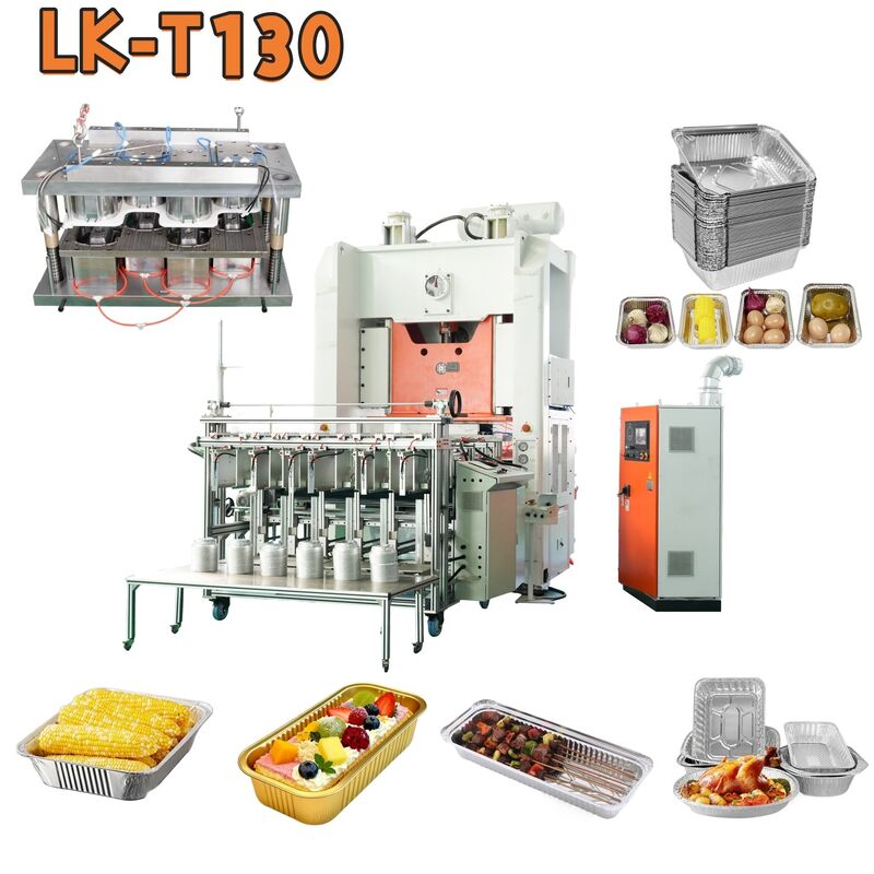 T130 800ml 0.03mm পার্সেল অ্যালুমিনিয়াম সিলভার ফয়েল একক ব্যবহারযোগ্য খাদ্য পাত্রে তৈরির মেশিন