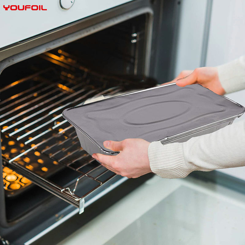 ফ্রিজার ওভেন মাইক্রোওয়েভের জন্য ঢাকনা সহ পিকনিক ডিসপোজেবল অ্যালুমিনিয়াম ফয়েল কন্টেইনার