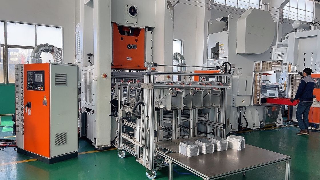অ্যালুমিনিয়াম ফয়েল ফুড কন্টেইনার তৈরির মেশিনটি একটি সহজ এবং দক্ষ উত্পাদন প্রক্রিয়া অনুসরণ করেঃ